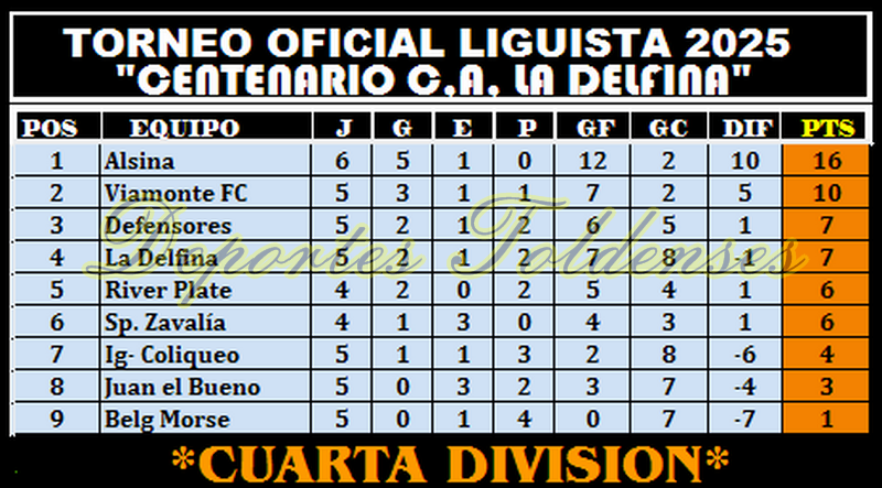 CUARTA DIVISION - ASI ESTAN LAS POSICIONES