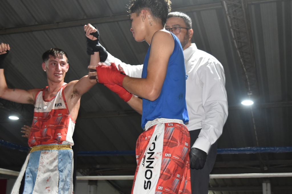 PELEA DE FONDO: Vibrante, emotiva, pelea sangrienta, donde el jovencito de nuestra ciudad Mateo Gómez le ganó por puntos a Laureano Yancaqueo (Santa Rosa)